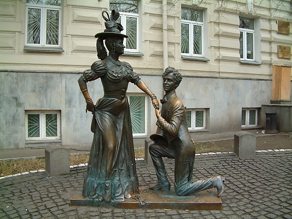 В 1999 году на Андреевском спуске в Киеве возле Андреевской церкви персонажам фильма был установлен памятник по проекту архитектора Владимира Скульского и скульпторов Владимира Щур и В. Сивко. Композиция включает фигуру Свирида Голохвостого, преклонившего колено и подающего руку Проне Прокоповне[12].