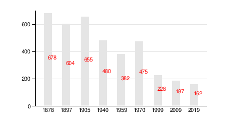 На 1 января 2018 года насчитывалось 158 жителей в 79 домохозяйствах, из них 15 младше трудоспособного возраста, 91 — в трудоспособном возрасте и 52 — старше трудоспособного возраста[5].