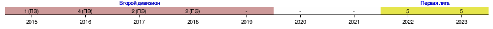 | 2015 | Второй дивизион | Предварительный этап, зона Северо-Запад | 1 | не участвовал | |||||||||||
