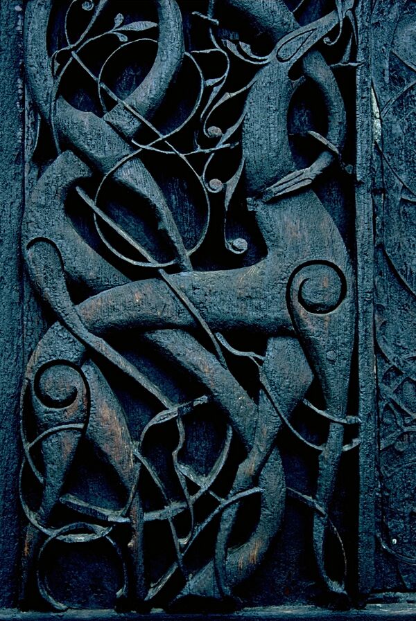 В VI—XIII веках на территории Северной и Центральной Европы появляется уникальный стиль, известный под условным названием «абстрактный звериный орнамент», состоящий из мотивов плетёного орнамента и отдельных изображений голов, лап, хвостов, крыльев фантастических существ, зверей, птиц, драконов. Название происходит от условности, абстрактности размещения этих деталей[8].