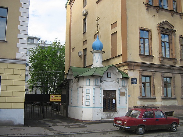 Слева к зданию общины примыкает небольшая часовня Воздвижения Креста Господня и святой равноапостольной царицы Елены, построенная также в неорусском стиле. После закрытия часовня использовалась для хозяйственных нужд. С 2013 года в ней совершаются регулярные богослужения. Настоятелем назначен иерей Сергий Сартаков[9].