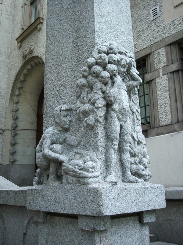 Здание недолго сохранялось в первоначальном виде: после приобретения банком соседнего углового участка возникла необходимость перестройки двух зданий в единый комплекс. Эта задача была решена архитектором У. В. Ульбергом, по проекту которого в 1909—1910 годах два дома соединил переход в виде зубчатой стены. В результате перепланировки вход в банк был перенесён с главного фасада на боковой, для чего к левому фасаду была пристроена гранитная наружная лестница в стиле северный модерн. По ней посетители попадали прямо в операционный зал. Парапет гранитной лестницы украшен светильником на высоком постаменте, декорированном барельефами скульптора Хильды Флодин-Риссанен, изображающими мальчиков с девочкой, которые собирают урожай яблок — сюжет, призванный символизировать доходность банковских вкладов.