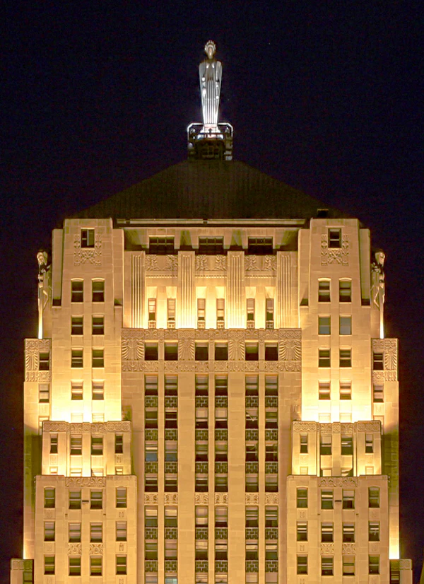 Верх здания украшает скульптура богини плодородия по древнеримской мифологии Цереры, изготовленная из нержавеющей стали. Выбор скульптуры не был случайным. В здании Чикагской торговой палаты находилась самая крупная биржа по торговле зерном[1].