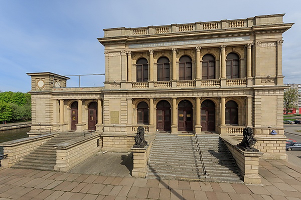 Новое здание биржи было построено архитектором Генрихом Мюллером, которого пригласили из Бремена. Строительство началось в 1870 году, а 6 марта 1875 года состоялось торжественное открытие здания. Биржа использовалась не только для проведения торгов. Здесь также устраивались выставки и проводились концерты[2].