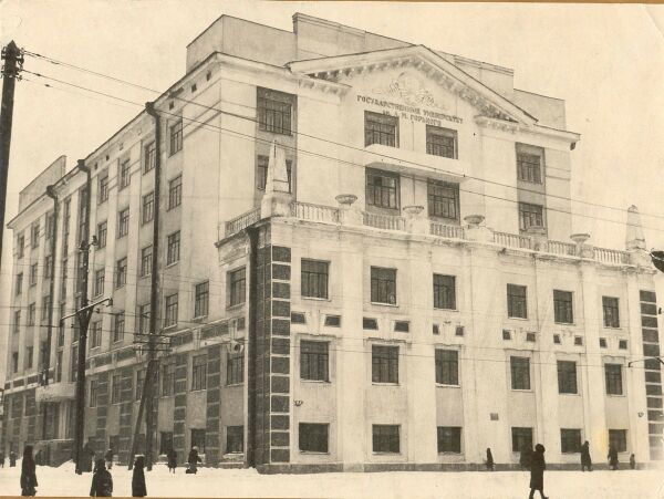 После Октябрьской революции в здании училища разместилась Школа командиров Красной Армии. В марте 1920 года вместо неё был открыт рабфак, а уже 19 октября того же года был образован Уральский университет, в состав которого вошёл и рабфак. Позднее, в 1931 году, был восстановлен Свердловский государственный университет. К 1934 году здание уже не вмещало студентов, и потребовалась очередная реконструкция[6][7]. Именно в её ходе здание постепенно приобрело свой нынешний вид[3]. Оно стало шестиэтажным, с примыкающей на востоке трёхэтажной частью. Кроме того, в нём объединились два архитектурных стиля: фасад, выходящий на улицу Народной Воли, построен в стиле конструктивизма, а тот, что выходит на улицу 8 Марта — сталинский ампир[3][7]. Фасады оформлены штукатурным декором, скрывающим кирпичный декор первоначального трёхэтажного объёма здания. Они завершаются гладким фризом и венчающим карнизом; все окна имеют прямоугольную форму и лишены декоративных обрамлений[4]. Объём трёхэтажной части оформлен пилястрами и завершён балюстрадой с вазонами и обелисками по углам. Над выносным карнизом шестиэтажной части здания возведен ступенчатый аттик с «разорванным» щипцовым фронтоном[4][3].