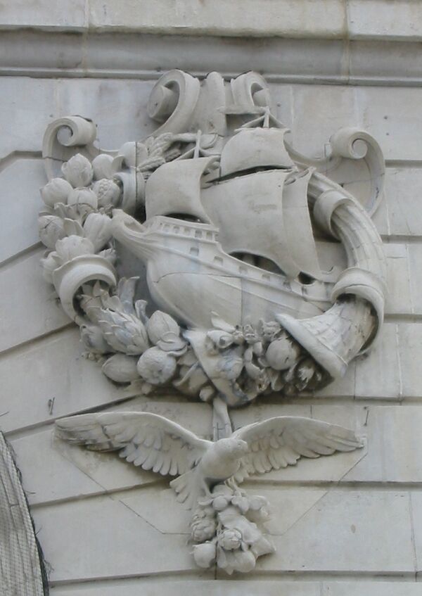Во всем здании есть многочисленные отсылки на море и морские операции как Ливерпуля, так и Британской империи. Главные въездные ворота украшены земным шаром, поддерживаемым дельфинами, а чугунные ворота и опоры ворот украшены русалками, ракушками и якорями, а также имеют щиты с инициалами «MD & HB». [19] Внешние светильники сконструированы таким образом, что кажется, что сами огни держит в руках римский бог Нептун . [6] Точно так же лифты также украшены морскими мотивами в виде позолоченных эмблем, изображающих земной шар, морских коньков и якоря. [14] В центральном зале фриз между цокольным и вторым этажами украшен словами 107-го псалма : «Сходящие в море на кораблях, делающие дела в водах больших, видят дела Господни и чудеса Его в море». глубокий. Anno Domini MCMVII ". [14]