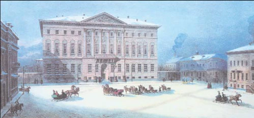 В 1929—1930 годах дом был перестроен по проекту архитектора Ивана Фомина. Усадебный комплекс дополнили новым шестиэтажным корпусом в стиле конструктивизм. Он расположился с тыльной стороны дворца на месте разобранных старинных флигелей. Строение отделялось от главного здания каменными арками с переходами[3][4][6].