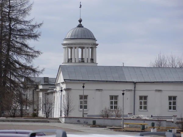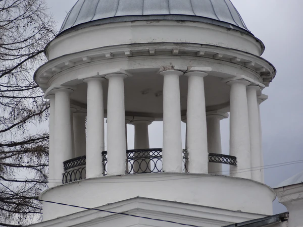 Основное здание одноэтажное прямоугольное в плане, дополненное с южного и северного фасадов ризалитами. У ризалита южного фасада в центре арочный вход с двумя узкими прямоугольными окнами по обе стороны. Стены выделены под стиль рустики с замковым камнем у входной арки. Ризалит завершает классический треугольный фронтон с гладким тимпаном и кронштейнами в карнизах. Крылья здания одинаковые, в каждом по два прямоугольных окна. Рустовка на стенах аналогичная ризалиту. Второй ярус здания формирует открытая ротонда на квадратном подиуме с восемью спаренными колоннами дорического ордера и литой оградой. На стенах подиума рустика, с арочными нишами в каждой. Ротонда увенчана сферическим куполом с яблоком и тонким шпилем-иглой. Боковые крылья имеют пологую вальмовую кровлю[2].
