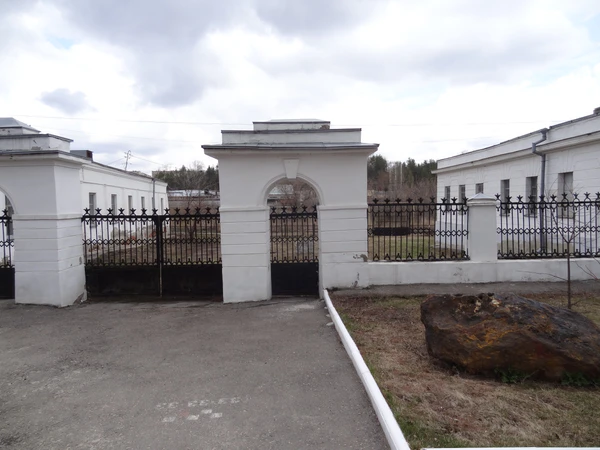 Двери калиток прямоугольные, металлические, сквозные вверху и сплошные внизу. Рисунок всех решеток одинаков. Флигели ранее представляли собой крытые колоннады, выполненные в одном стиле с ротондой конторы. В XX веке они были разобраны до основания и утратили свою подлинность. Воссозданы были с грубейшими искажениями подлинников и не могут быть отнесены к памятникам архитектуры[2].