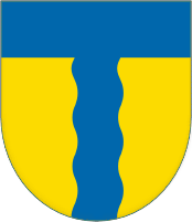 В золоте зелёная, обременённая летящей вправо, с воздетыми и распростёртыми крыльями, серебряной чайкой и трижды проросшая еловой лапой глава и лазоревая выщербленная оконечность, из-за которой возникает серебряный безант[38].