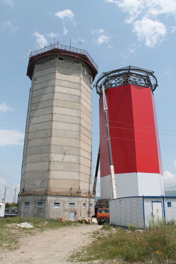 - два уравнительных резервуара в виде металлических цилиндров диаметром 13,4 м и высотой 30,7 м с металлической трубой-стояком диаметром 5 м внутри, закрытых защитными ограждениями. Уравнительные резервуары соединены с деривационным тоннелем шахтами высотой 44 м;