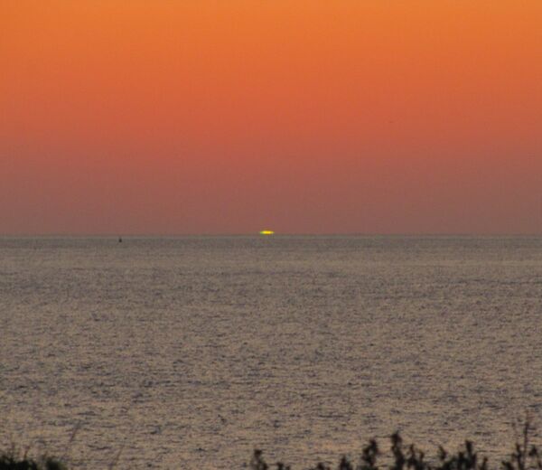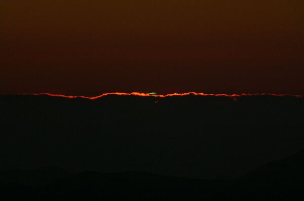 - в виде зелёного края верхней части диска Солнца,