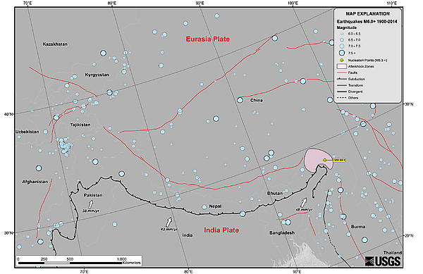 Бо́льшая часть Афганистана расположена в зоне континентальной деформации в пределах Евразийской плиты. Сейсмическая активность в Афганистане находится под влиянием субдукции Аравийской плиты на западе и субдукции Индийской плиты на востоке. Скорость субдукции Индийской плиты вдоль континентальной конвергентной границы оценивается в 39 миллиметров в год или выше. Наблюдается транспрессия. Сейсмичность фиксируется на глубине 300 километров и вызвана субдукцией плит. Разлом Чаман — это крупный трансформный разлом, в котором происходят сильные землетрясения с неглубоким гипоцентром; он образует транспрессионную границу между Евразийской и Индийской плитами. Эта зона состоит из сейсмически активных надвиговых и сдвиговых разломов[9].