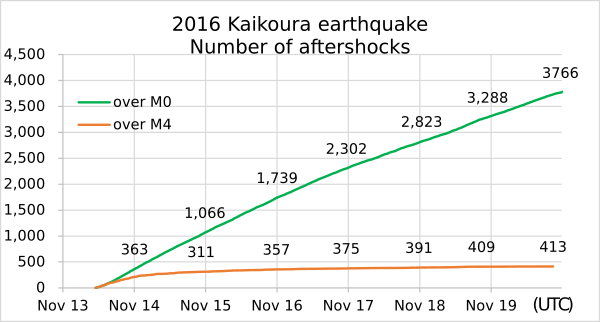 | 20 ноября 2016 | 19:52:48 | 5.0 | 21 км (13 миль) | 25 км к юго-западу от Каикоуры | [143] |