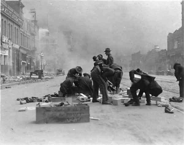 Хотя часто сообщается, что мэр Сан-Франциско Ю. Шмитц (Eugene Schmitz) и генерал Ф. Фанстон (Frederick Funston), командующий военной базы Президио, объявили в городе военное положение, оно не было введено. 4000 солдат, участвовавших в тушении пожаров и ликвидации их последствий, подчинялись гражданским службам[11]. Шмитц, однако, уже 18 апреля издал приказ, позволяющий полиции и солдатам расстреливать на месте пойманных мародёров: было убито около 500 человек.