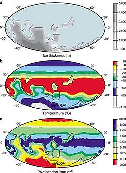 - ↑ Hyde, W.T.; Crowley, T.J., Baum, S.K., Peltier, W.R. Neoproterozoic 'snowball Earth' simulations with a coupled climate/ice-sheet model (англ.) // Nature : journal. — 2000. — Vol. 405, no. 6785. — P. 425—429. — doi:10.1038/35013005. — PMID 10839531. Архивировано 4 июня 2007 года. Архивированная копия. Дата обращения: 29 апреля 2011. Архивировано из оригинала 4 июня 2007 года.