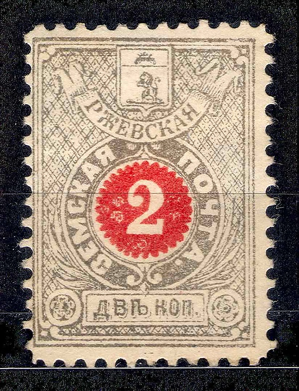 На большинстве марок земской почты Ржевского уезда был изображён герб Тверской губернии и герб Ржевского уезда[1].
