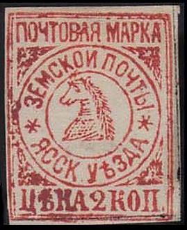 После повторного открытия почты в 1880 году, использовались земские марки предыдущего выпуска, а также марки 5-копеечного достоинства голубого цвета, отпечатанные тем же штампом, что и марки первого выпуска.