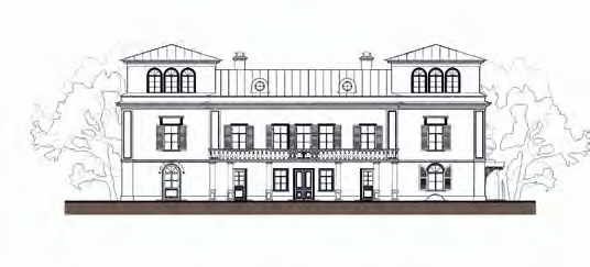 - на южном фасаде: восстановить утраченные участки стен второго и третьего этажей; восстановить историческую геометрию оконных проёмов, согласно проекту реставрации; на оконные проёмы установить деревянные ставни; восстановить профилированный сандрик на кронштейнах над центральным окном второго этажа; по первому и второму этажу восстановить пилястры, фланкирующие фасад; установить над приямками арочные козырьки; выполнить профилированные карнизы и межэтажные пояски; на кровле установить металлический шпиль; устройство слухового окна для проветривания кровли;