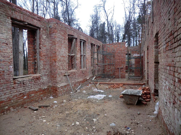 - по архивным фотографиям восстановить утраченные объёмы левого и правого крыльев второго этажа из кирпича, над ними восстановить утраченные прямоугольные деревянные антресоли;