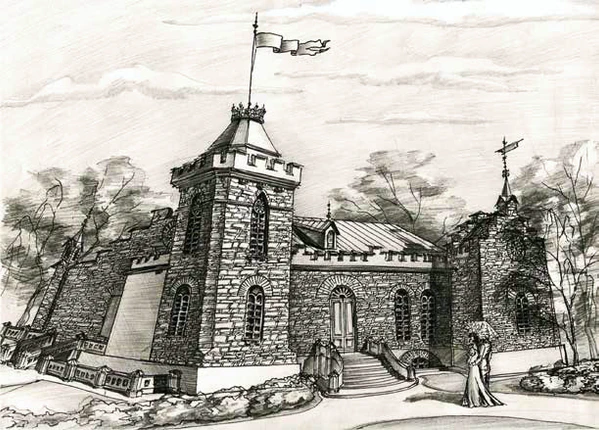В проекте также отмечено, что реконструкция утраченного слоя башни с флагштоком позволит завершить архитектурную композицию объекта и восстановить его утраченный силуэт. Малую башню предлагалось завершить ступенчатым щипцом с пинаклей. Пинакли и фиалы украшались краббами, крестоцветами и шпилями. Западный фасад берет на себя функцию парадного, так как выходит на полукруглую главную дорогу, ведущую к основным объектам имения. Предлагалось, что в историческом месте будет парадная лестница, окаймлённая двумя башнями, посередине фасада; также было предложение завершить прямоугольные пилястры восточного фасада остроконечными башнями, а над карнизом разместить зубцы, аналогичные вершине башни[36].