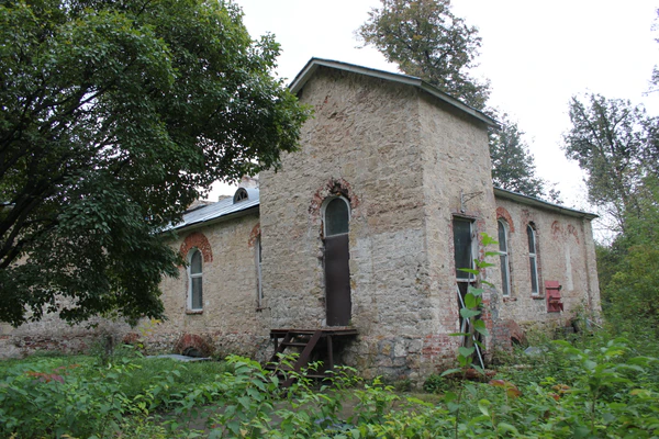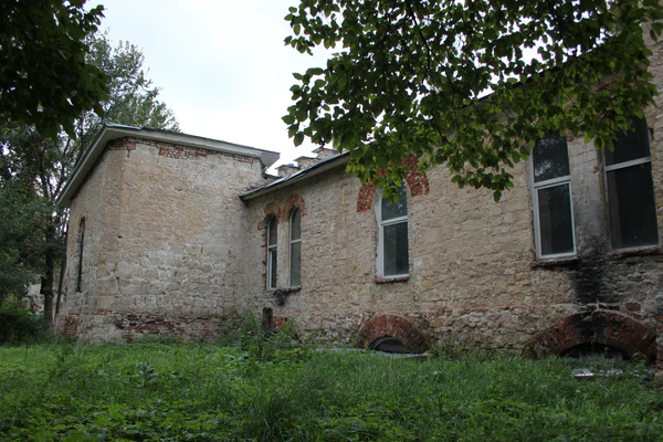 На первом этаже идёт ряд длинных прямоугольных проёмов с белокаменными перемычками, расположенными ровно под полукруглыми окнами. Центральные части белокаменных стен обильно покрыты керамическим кирпичом XIX века. Скорее всего, объект входил в состав имения Троицкое-Кайнарджи графа Румянцева-Дунайского. Это был один из гостевых домов Румянцева для многочисленных гостей графа[20].