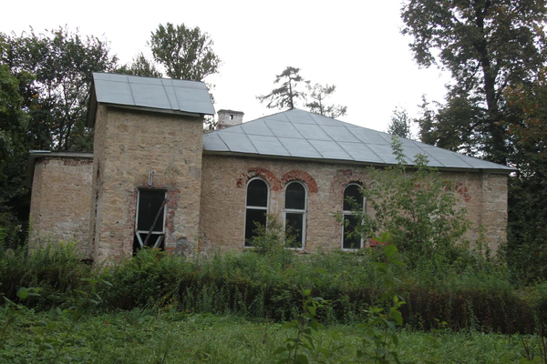 Одноэтажное здание в центральной части усадьбы с цокольным этажом и готическими окнами — сохранившийся флигель с башней — общей площадью 433,9 м² расположено в 35 метрах от главного дома. Объект оштукатурен, декора практически нет, на фасаде расположены арочные окна. Есть высокий цокольный этаж с сохранившимися кирпичными сводами[29]. Здание состоит из прямоугольного основного объёма и двух примыкающих небольших объёмов по периметру[30].