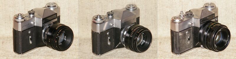 - Штатный объектив — «Гелиос-44М» 2,0/58 (с «прыгающей» диафрагмой).
