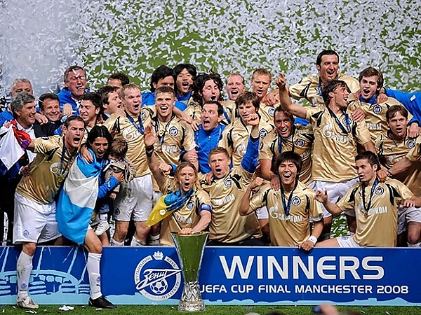 Именитый нидерландский специалист Дик Адвокат в 2007 году привёл «сине-бело-голубых» к первому в истории чемпионству, а в 2008 году — к победам на Кубке и Суперкубке УЕФА. Пятеро игроков клуба в составе сборной России завоевали бронзу на чемпионате Европы в Австрии и Швейцарии. По версии ряда иностранных изданий в это время «Зенит» входил в десятку самых популярных клубов Европы[12][13].