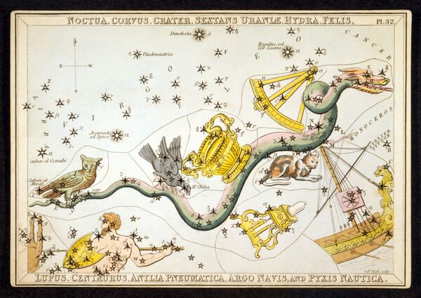 - Корабль Арго (отменённое созвездие, сейчас разделено на Киль, Паруса, и Корму)[31]