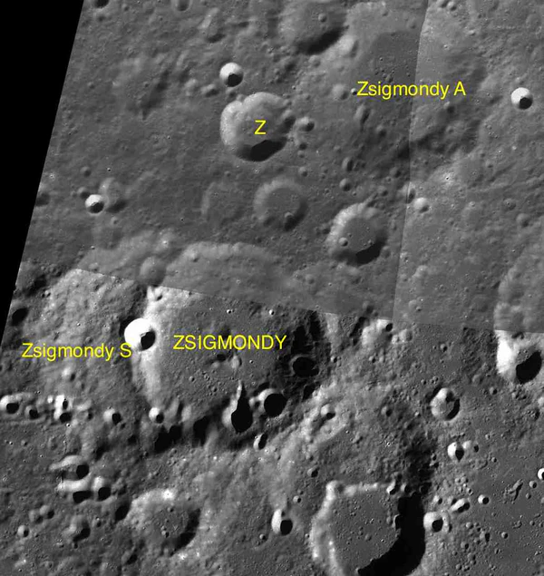 - Образование сателлитного кратера Зигмонди A относится к нектарскому периоду[1].