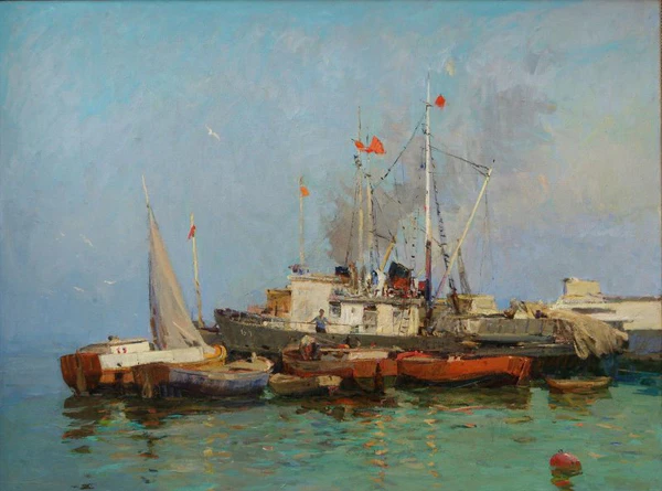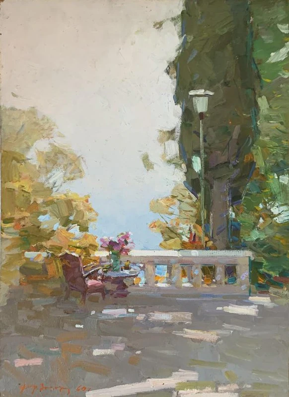 Фёдор Захарович Захаров специализировался на пейзажах и натюрмортах. Основные сюжеты – крымские виды: горные пейзажи с садами и виноградниками, архитектура Бахчисарая, порт Ялты, море и заповедные уголки с ручьями и высокими деревьями на фоне серовато-белого неба. Работы выполнены в духе советского импрессионизма с акцентом на цвет и динамику мазка.