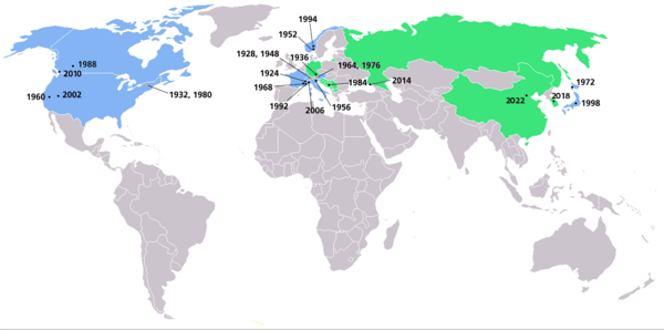 5 С этого года зимние Олимпийские игры больше не проходят в том же году, что и летние игры. Первый и единственный раз в истории интервал между зимними Олимпийскими играми составил 2 года.