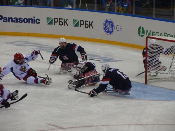Соревнования по следж хоккею проводятся только для спортсменов-мужчин с физическими недостатками в нижней части своего тела. Игра проходит с использованием международных правил по хоккею с шайбой с некоторыми изменениями. Спортсмены сидят в санях с двумя лезвиями, которые позволяют шайбе проскользнуть под ними. Они также используют две палочки, которые имеют шип на конце для отталкивания от льда и загиб-клюшку для владения шайбой и её броска. Спортсмены делятся на три группы.