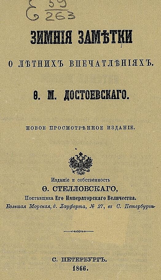 Очерк написан как путевые записки. В сатирическом духе Достоевский рассказывает как о впечатлениях от своего первого путешествия по Европе, совершённого в 1862 году, так и об отношении русских к Европе. Достоевский перемежает свои записки разного рода публицистическими отступлениями из истории литературы и европейских нравов.