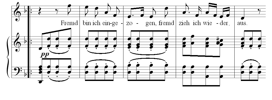 Любовная драма оказывается лишь предпосылкой бесцельных странствий героя, тщетной попытки его бежать от самого себя, от своих страданий. Поскольку определённого сюжета здесь нет, большое значение приобретают чисто музыкальные средства объединения (интонационные связи, тональный план)[2].