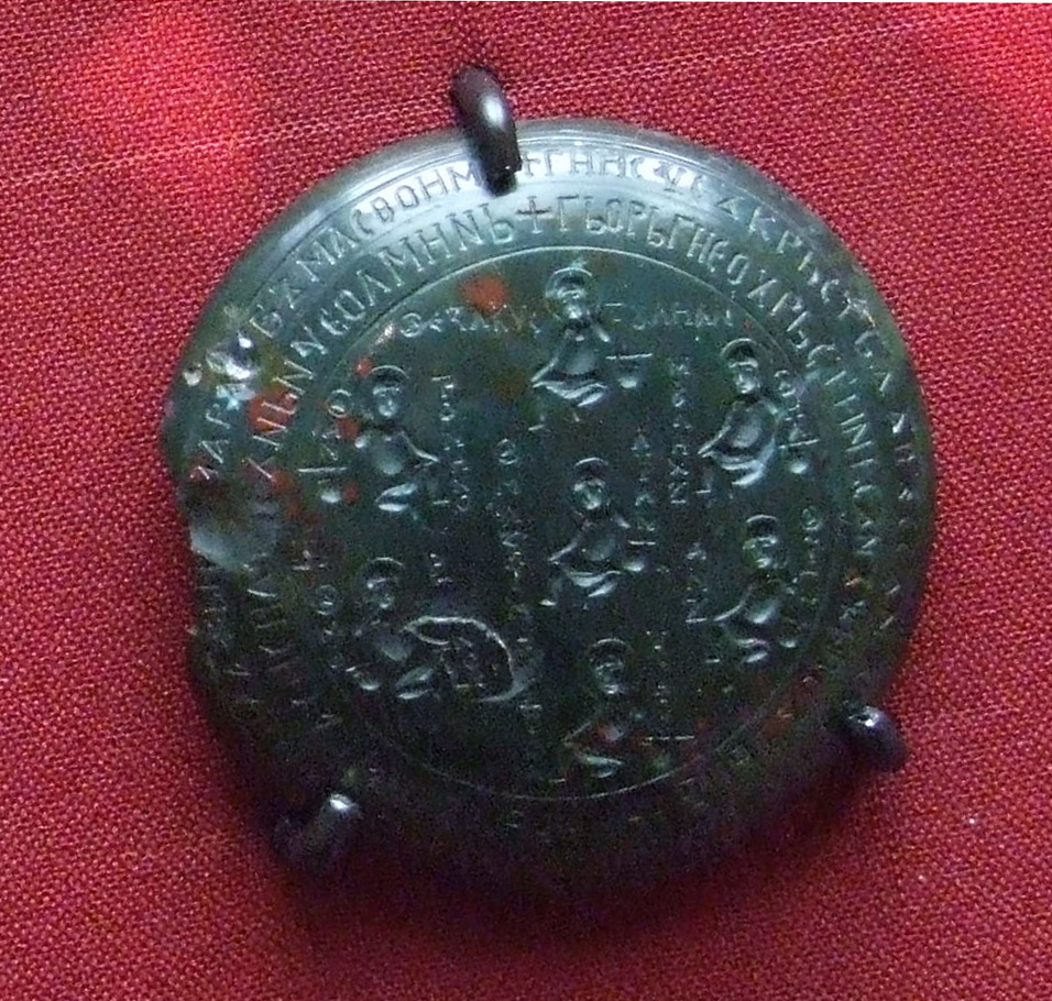 | Черниговская гривна | Яшмовый змеевик. Государственный исторический музей. Оборотная «приличная» сторона с изображением святых. | Смоленская гривна |