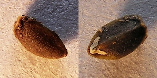 Плод — трёхгранный, продолговатый орешек тёмно-бурого цвета, длиной 2,8—3,1 мм, толщиной 1,5—1,8 мм. Масса 1000 семян 2 г.