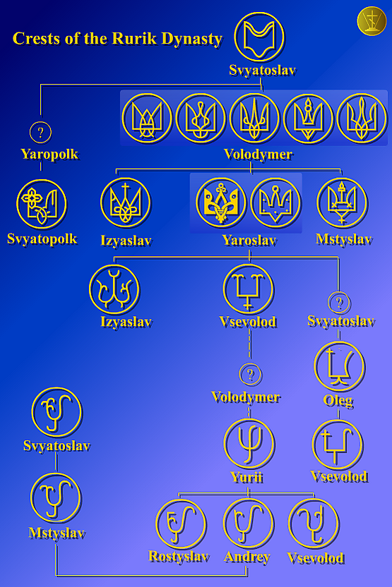 Геральдические знаки древнерусских князей дошли до нас не только в виде изображений на монетах и печатях, но и на подвесках, перстнях, оружии и т. п. По этим находкам можно не только проследить эволюцию княжеских символов Древней Руси, но и попытаться восстановить их происхождение.