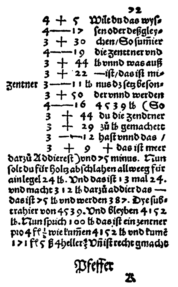 Немецкий математик и теоретик музыки Генрих Грамматеус в своём трактате 1518 года также использует знаки «+» и «−» для обозначения сложения и вычитания[9].