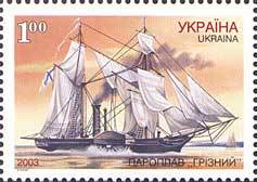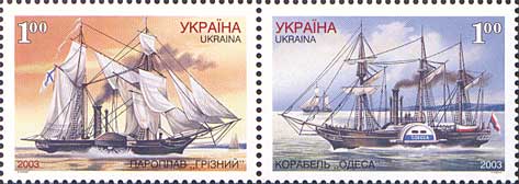 Зчіпка серії «Суднобудування в Україні»: Пароплав «Грізний»; Корабель «Одеса». с укр. — «Сцепка из серии „Судостроение на Украине“: |