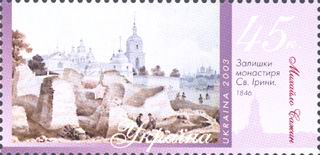 Серія «Київ очима художників»: Залишки монастиря Св. Ірини. 1846. Михайло Сажин. с укр. — «Серия „Киев глазами художников“: |