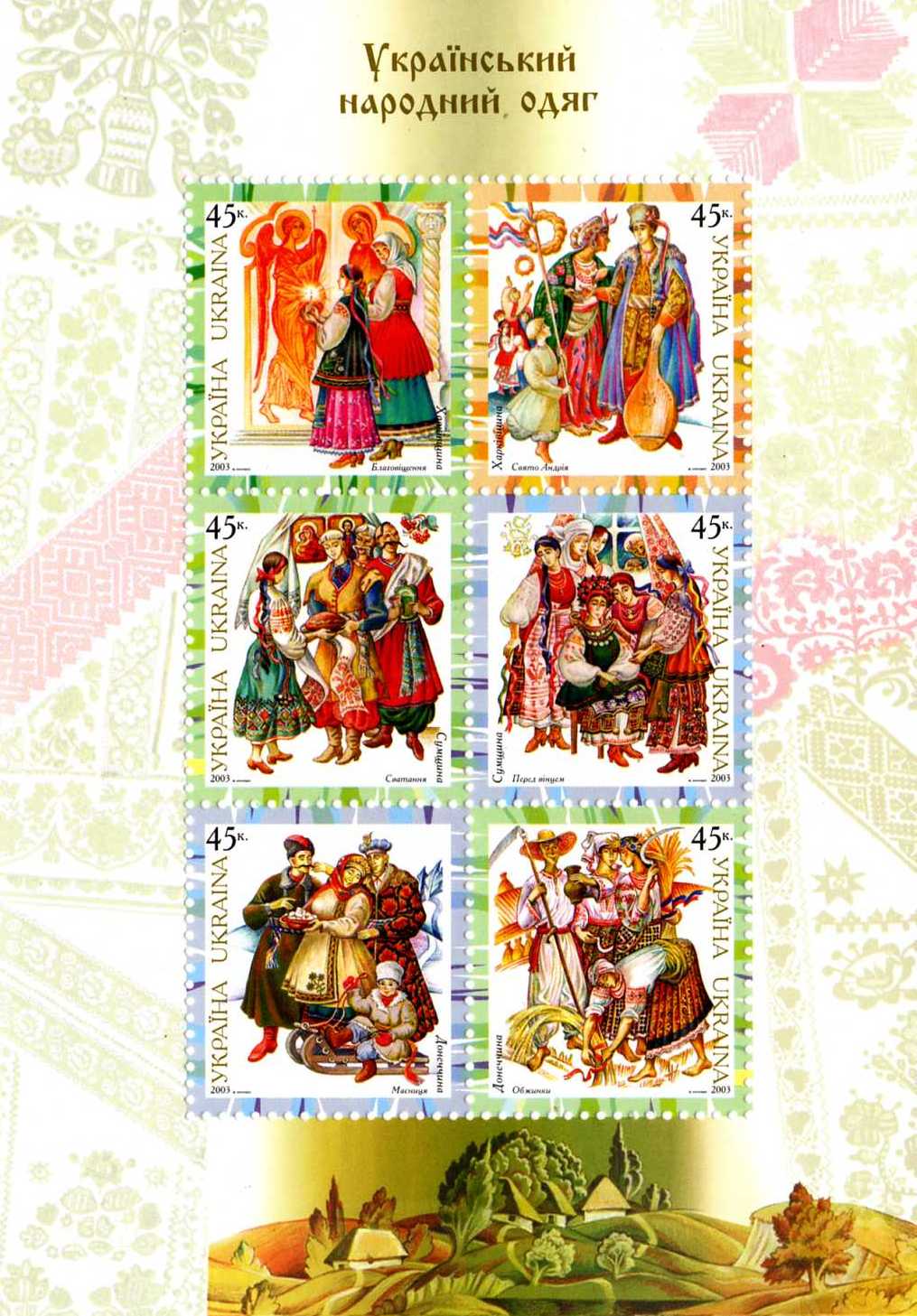 Зчіпка «Український народний одяг. Харківщина»: Благовіщення; Свято Андрія. с укр. — «Сцепка „Украинский народный костюм: Харьковщина“: