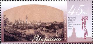 Серія «Київ очима художників»: Краєвид старого міста з Ярославового Валу. 1854. Василь Тімм (Георг Вільгельм). с укр. — «Серия „Киев глазами художников“: