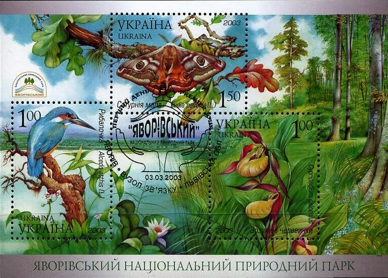 Блок «Яворівський національний природний парк»: Рибалочка; Зозулині черевички; Сатурнія мала. с укр. — «Блок „Яворовский национальный природный парк“: |