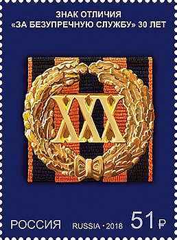 - XV, XX, XXV, XXX (лет) — военнослужащие, безупречно прослужившие соответственно 15, 20, 25, 30 лет и награждённые двумя и более наградами федеральных государственных органов;