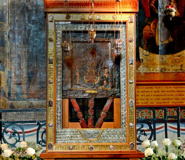 Икона «Знамение» занимает почётное место среди святынь Дома Романовых. Образ стал известен в России с апреля 1653 года, когда был подарен царю Алексею Михайловичу константинопольским патриархом Афанасием III Паттелларием. По преданию, последний раз икону видели в момент отречения государя от престола[8].