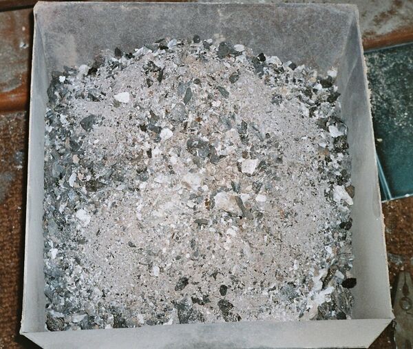 Минералогический анализ химического состава золы, которая образуется после сгорания и прокаливания различных видов топлива показывает, что основной компонентой золы является стекло с кристаллической фазой в виде кварца, гематита, магнетита и разнообразных силикатов кальция[1].