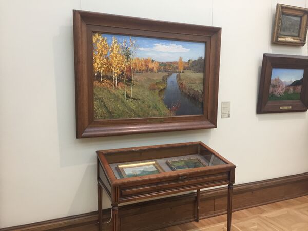Купленную картину Павел Третьяков в том же 1896 году передал в дар Третьяковской галерее. В каталогах 1896 и 1917 годов это полотно фигурировало под названием «Осень»[1]. Сам же Левитан был не вполне доволен этим произведением, считая его несколько «грубым»[46]. В 1896 году он написал другую, менее известную картину с таким же названием — «Золотая осень», которая также находится в собрании Государственной Третьяковской галереи (холст на картоне, масло, 52 × 84,6 см, инв. 5635)[47][48][49].