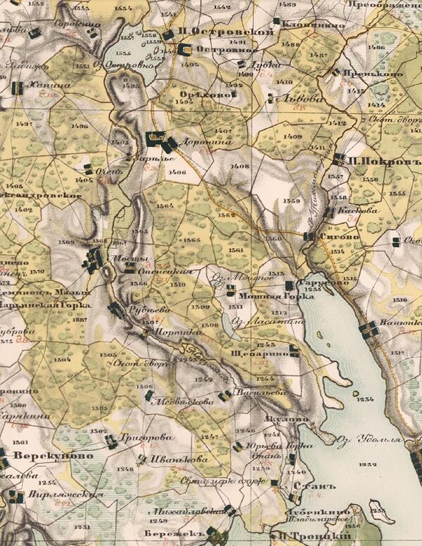 Левитан познакомился с Анной Николаевной Турчаниновой летом 1894 года в Островно, и у них завязался роман. Вскоре после этого художник переехал в усадьбу Горка и жил там в августе и сентябре 1894 года, а затем вернулся туда ранней весной 1895 года — именно тогда была написана его картина «Март»[16][17]. В конце марта Левитан возвратился в Москву, а в начале мая опять приехал в Горку, где прожил до начала октября (а также, возможно, возвращался туда на несколько дней во второй половине октября)[18]. Так как в усадьбе не было подходящих помещений, специально для художника на территории имения был построен двухэтажный дом-мастерская, расположенный на берегу озера Островно, у впадения в него реки Съежи[19][15]. В шутку этот дом называли «синагогой»[4][20][21].